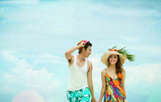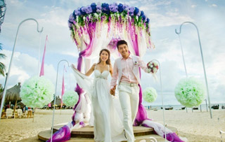 第一套礼服取景:浪漫海岸椰林、姻缘石、同心桥等外景 |