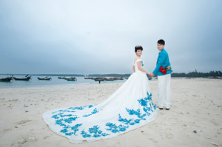 抵达浪漫海岸景区,前往婚庆化妆间挑选礼服;由专业化妆师负责化妆 |