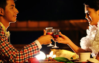 19:00 海边烛光晚餐,就着烛光灯火与缱绻夜色,与挚爱的人相邀进餐,品红酒佳肴,赏美景歌舞,共启婚姻生活浪漫之旅