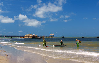 驻足浪漫海岸西边海岸线上,等候渔船陆续归来,保留着原始纯朴色彩的疍家渔民将把新鲜捕捞的各种生猛海鲜呈现眼前,对海鲜情有独钟的客人可自行询价、购买。