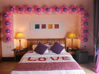 新人入住豪华的浪漫蜜月新房,可根据新人意愿安排“闹洞房”;亲友团入住观海景房,畅享滨海风情 |