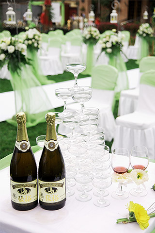 层层叠叠的香槟塔象征婚后的生活甜蜜节节高 |